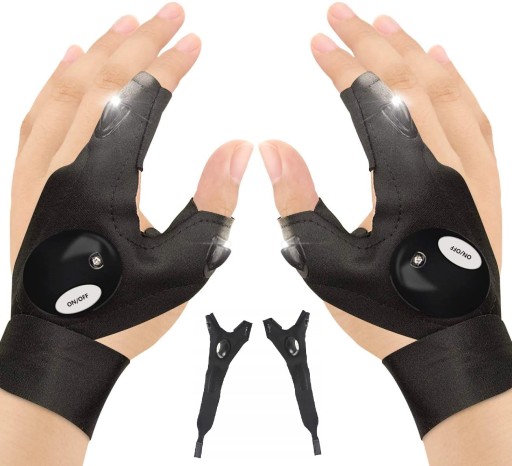 Rękawiczki są wyposażone w lampki LED umieszczone na kciuku oraz palcu wskazującym. To zapewnia równomierne oświetlenie obszaru pracy, co jest niezwykle przydatne w wielu zawodach, takich jak mechanik czy elektryk.