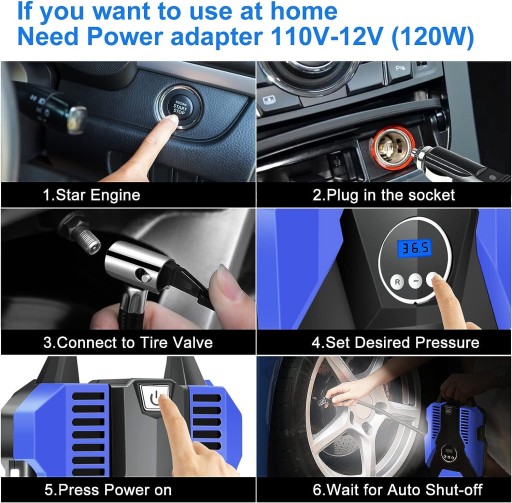 Cyfrowy inflator do opon jest bardzo łatwy w użyciu. Wystarczy podłączyć go do gniazdka 12 V w samochodzie i podłączyć wąż do opony, którą chcesz napompować. Przesuń przełącznik, a sprężarka powietrza wykona całą pracę za Ciebie. Gdy PSI osiągnie pożądany próg, inflator wyłączy się automatycznie, zapobiegając nadmiernej inflacji