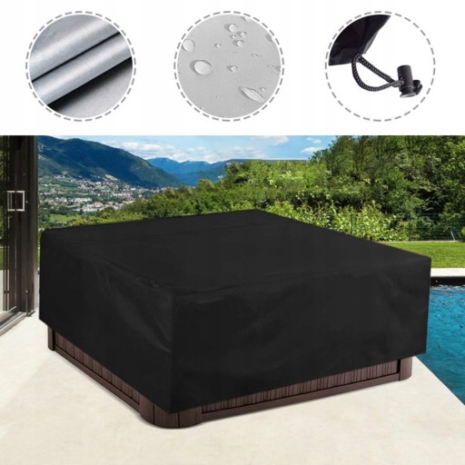 : : Elastyczny dół utrzymuje okrycie na miejscu w wietrznych warunkach Materiał wysokiej jakości: wykonany z wodoodpornej tkaniny oxford 210D, odpornej na promieniowanie UV, wystarczająco wytrzymałej, aby zapobiec opadaniu deszczu, , śniegu, kurzu, liści Praktyczny w użyciu: szczególnie podczas silnych wiatrów i trudnych warunków pogodowych, jest łatwy w użyciu Pokrycie: konstrukcja odporna na promieniowanie UV zapobiega wystawieniu mebli na , dzięki czemu wanna z hydromasażem zawsze wygląda jak Wielofunkcyjny: pyłoszczelny, uniwersalny na