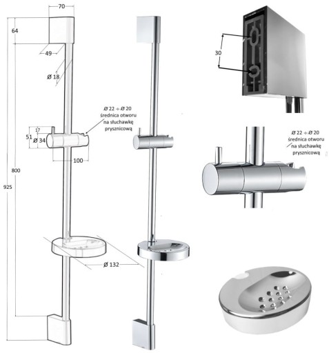 Regulowany drążek prysznicowy SOTBE LARK LARK-DC-24834343 z mydelniczką kolor chrom
