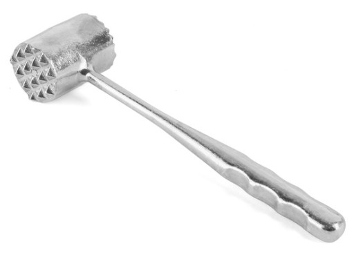 Tłuczek do mięsa wykonany z aluminium. Rączka posiada specjalne żłobienia na palce, dzięki czemu trzyma się bardzo pewnie podczas używania Tłuczek jest dwustronny - posiada z jednej strony grube, a z drugiej drobne nacięcia. Umożliwia to utłuczenie mięsa dokładnie tak jak chcemy. Dzięki tłuczeniu mięsa sprawisz, że będzie ono miękkie i soczyste.
