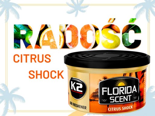 Cytrusowy szok – to właśnie jego doświadczysz umieszczając odświeżacz K2 Florida we wnętrzu swojego auta.