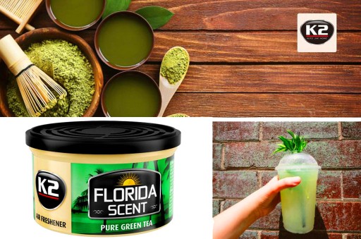Za sprawą odświeżacza K2 Florida Scent o aromacie Pure Green Tea stworzysz w samochodzie klimat wakacyjnego relaksu z kubkiem mrożonej zielonej herbaty w dłoni.