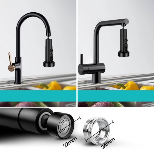 【2 Instalacje】① Z adapterem obrotowym 360 °: nadaje się do gwintu żeńskiego 22 mm lub gwintu męskiego 24 mm. ②Bez adaptera obrotowego 360°: nadaje się do złącza kranowego G1/2, a nie NPT. (Proszę dokładnie sprawdzić informacje o rozmiarze przed zakupem przedłużacza kranu do zlewozmywaka.)