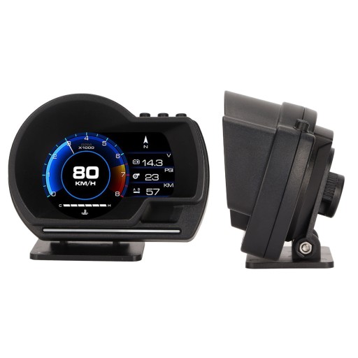 ⏺Wiele wyświetlaczy: Płaskie tryby OBD2 i GPS mogą być wyświetlane na tym samym interfejsie. Wyświetlacz trybu OBD: prędkość, temperatura wody/temperatura oleju; zużycie paliwa na napięcie; prędkość; przebieg; Czas podróży; numer satelity; Wysokość; ciśnienie turbiny; test przyspieszenia; test hamulca; dane itp.