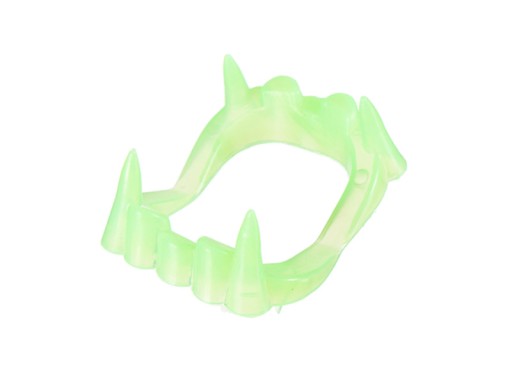 Zęby wampira wykonane z tworzywa fluorescencyjnego, które świeci w ciemności.