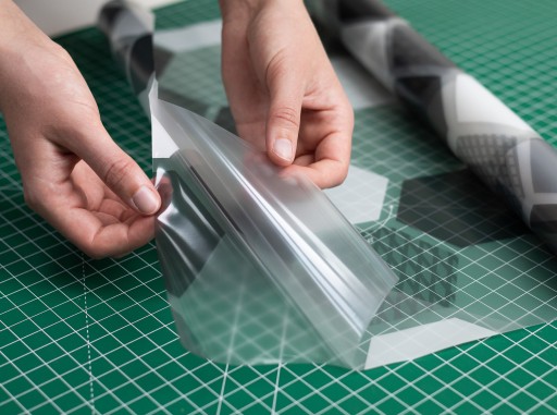 Nie widać tego na pierwszy rzut oka, ale z tyłu statycznej folii okiennej znajduje się cienka, folia ochronna. Aby folia okienna trzymała się na powierzchni szkła dzięki właściwościom statycznym, trzeba usunąć tę osłonkę, która znajduje się z tyłu folii.