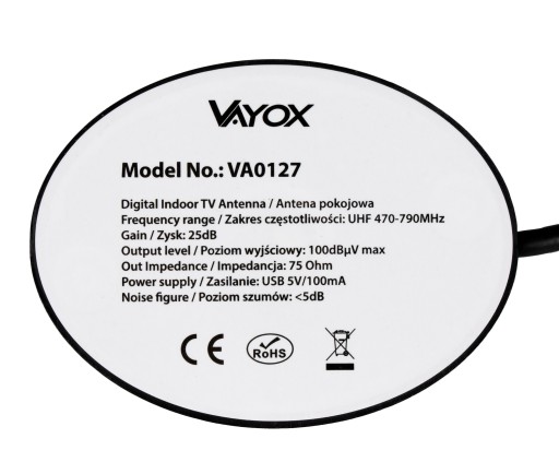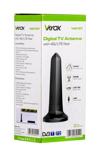 ANTENA POKOJOWA DVB-T2 DO TV NAZIEMNEJ DOOKÓLNA AKTYWNA MAGNES USB 4K VAYOX