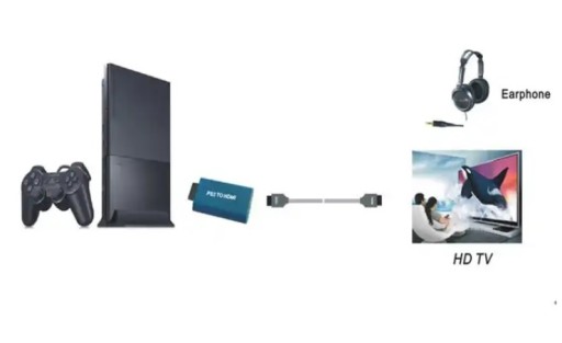 Adapter umożliwia podłączenie konsoli PS2 (która nie jest wyposażona w wyjście HDMI) do wejścia HDMI telewizora wysokiej rozdzielczości.
