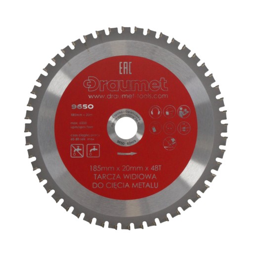 - Wysokiej jakości tarcza z uzębieniem z węglika spiekanego do cięcia metali.