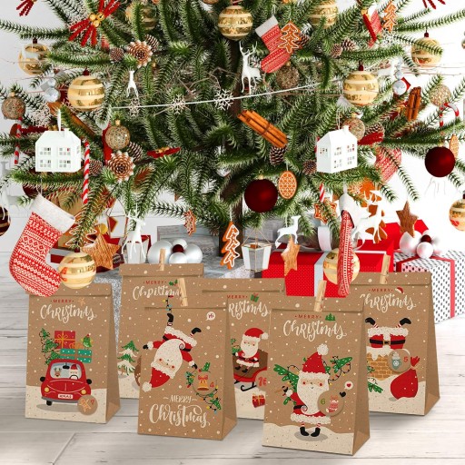 Idealnie nadają się do napełniania – 24 piękne Boże Narodzenie papier typu kraft bardzo dobrze nadają się do wypełniania wielu małych i średnich prezentów takich jak słodycze, czekolady, ciasteczka, małe zabawki, biżuteria itd. Te torebki na prezenty DIY mogą być używane na wiele okazji, takich jak święta Bożego Narodzenia