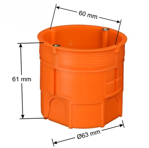 Puszka podtynkowa 60mm głęboka z wkrętami pomarańczowa Z60DFw