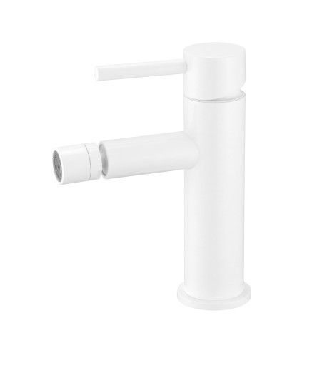 Bateria bidetowa przeznaczona do zamontowania na bidecie. Produkt został wykonany z mosiądzu i wielokrotnie pokryty powłoką w kolorze białym.