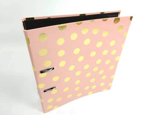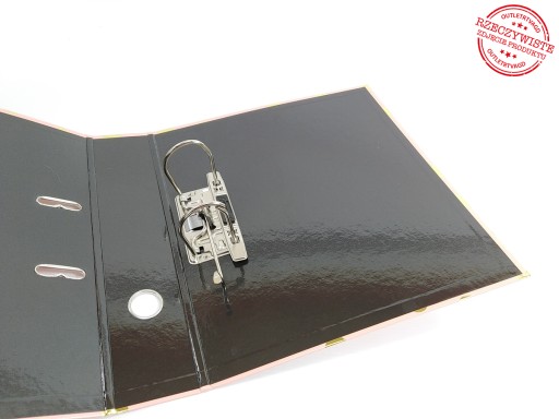 Segregator zkolorowym nadrukiem niemieckiej firmy Herma z mechanizmemringowym (2 ringi). Segregator otwiera się całkowicie, grzbiet jest idealnie płaski. Właściwości: