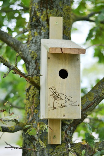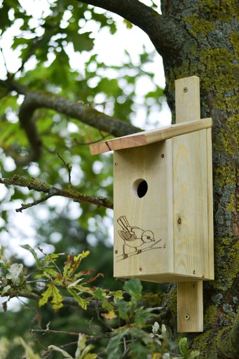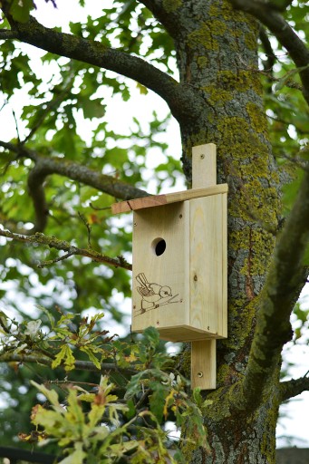 Budka lęgowa jest w standardzie zaimpregnowana bezpiecznym środkiem do drewna natomiast należy ją dodatkowo pomalować środkiem do zabezpieczenia drewna na zewnątrz