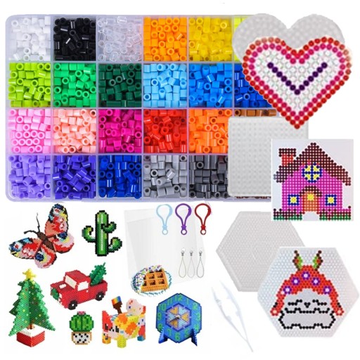 ♦️ Dzięki koralikom dziecko będzie mogło stworzyć bajecznie kolorowe wzory ulubionych postaci z bajek, obrazki, wisiorki, ozdoby na lodówkę czy breloczki do plecaka.