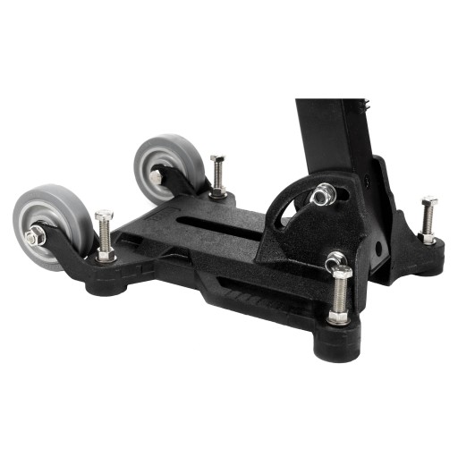Dźwignia posuwowa może być montowana z lewej lub prawej strony statywu. Kółka jezdne montowane przy podstawie statywu ułatwiają transport.