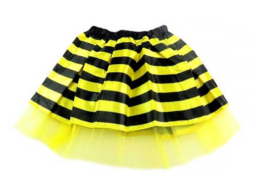 - Materiał: Poliestrowa spódniczka w żółto czarne paski. Podszyta żółtym tiulem.