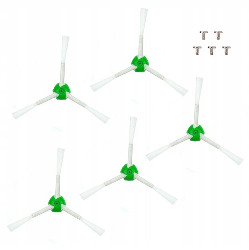 Zestaw 5 szczotek bocznych do odkurzaczy iRobot Roomba serii e5, i7, i3, j7. W zestawie znajdują się również śrubki montażowe.