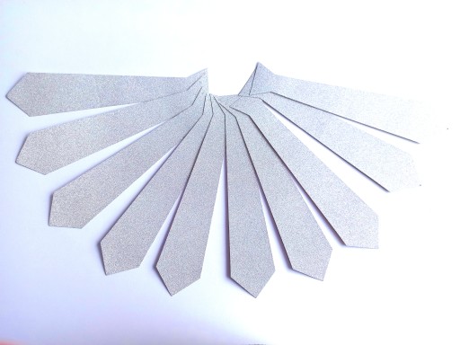 Zestaw krawatów dziecięcych wykonanych z papieru.