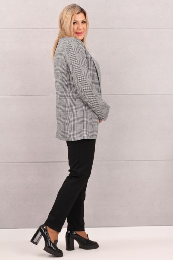 Ta marynarka damska w klasyczny wzór w kratę to idealne rozwiązanie na wszystkie okazje. Wykonana z najwyższej jakości materiałów, zachwyca nie tylko swoim wyglądem, ale także komfortem noszenia. Posiada dwie praktyczne kieszenie, które dodają jej funkcjonalności. Dzięki swojemu uniwersalnemu fasonowi, doskonale komponuje się zarówno z codziennymi, casualowymi stylizacjami, jak i eleganckimi outfitami na specjalne wydarzenia.