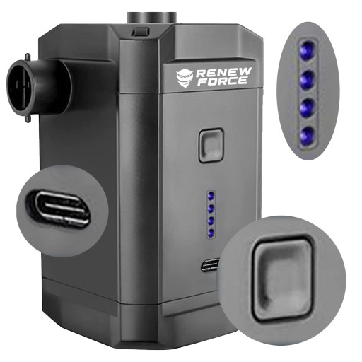 Jej kompaktowe rozmiary pozwalają na wygodne przechowywanie, a trzy różne końcówki umożliwiają nadmuchiwanie różnych dmuchanych akcesoriów. Solidna konstrukcja gwarantuje długą żywotność, a ładowanie poprzez USB Typ-C to dodatkowa wygoda.