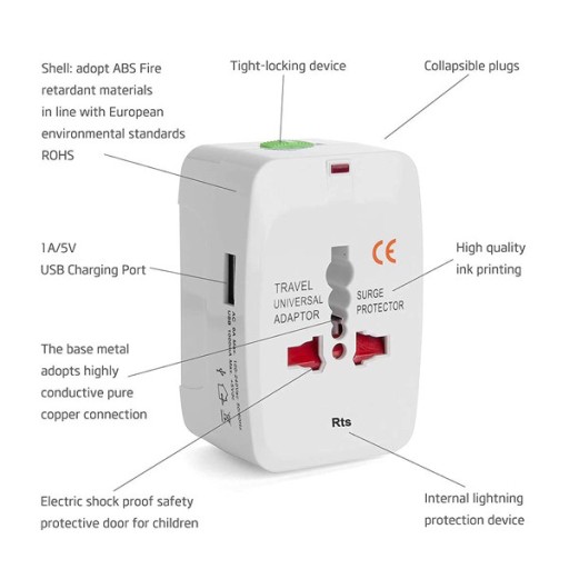 ADAPTER ZASILANIA 230V CAŁY ŚWIAT + ŁADOWARKA USB 1A