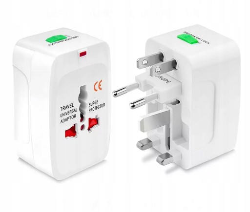 Adapter obsłuży gniazdka EU, UK, USA i AU!
