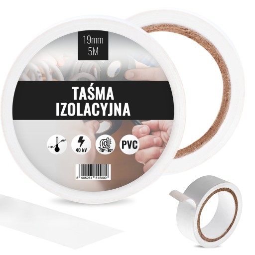 Taśma izolacyjna 19 mm x 5 m biały 5 szt.