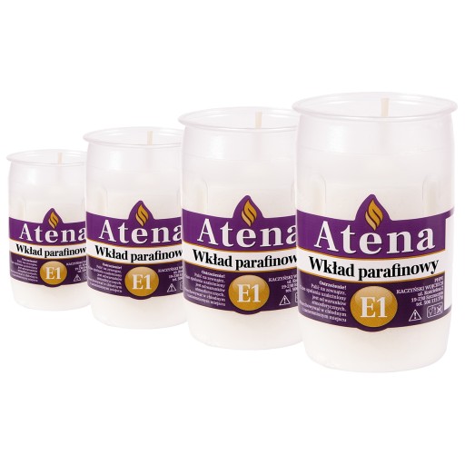 Wkłady ATENA seria E dzięki opatentowanym składzie wysokogatunkowej parafiny dają bardzo jasny i piękny płomień ukazując całe piękno w Państwa zniczach.