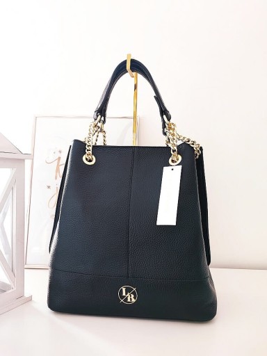 Laura Biaggi torba shopper skórzana czarna z łańcu