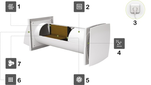 - Efektywna, energooszczędna stała wentylacja pojedynczych pomieszczeń, przy jednoczesnej minimalizacji strat ciepła.