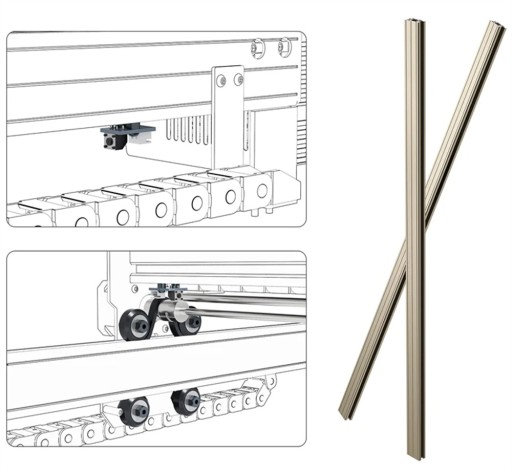 W odróżnieniu od wydłużania osi Y (lewa i prawa strona), Atomstack S20 Max przyjmuje bardziej stabilny i lepszy schemat przedłużania osi X, dzięki czemu S20Max może pracować stabilnie w dużym zakresie roboczym, a grawerowanie i cięcie linie są gładkie i nie drżą.