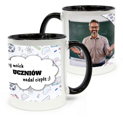 ⭐ Nasz kubek z czarnym środkiem i uchem nie tylko doskonale trzyma ciepło, ale jest również stworzony do personalizacji! Dodaj swoje imię, zabawny napis lub logo i ciesz się każdym porankiem, wiedząc, że masz jedyny taki kubek na świecie. Świetny na każdą okazję – na prezent z okazji urodzin, imienin, Dnia Matki, Dnia Ojca, ślubu, rocznicy, a także jako upominek na Święta Bożego Narodzenia. Świetny również na wieczory panieńskie, kawalerskie, walentynki lub jako firmowy gadżet reklamowy. Idealny dla każdego, kto chce dodać trochę wyjątkowości do codziennej kawy!”