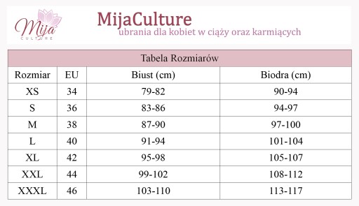 Produkty marki MijaCulture tworzone są dla kobiet które cenią sobie wygodę oraz funkcjonalność. Do produkcji naszej odzieży używamy tylko wysokogatunkowych materiałów. Od lat sprzedajemy nasze produkty na rynkach zagranicznych dzięki czemu znamy oczekiwania wielu mam. Wszystkie nasze ubrania produkowane są w Polsce.