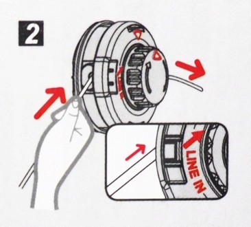 Kręcić przyciskiem zgodnie z wskazówkami zegara - żyłka nawija się do środka szpuli sama!.