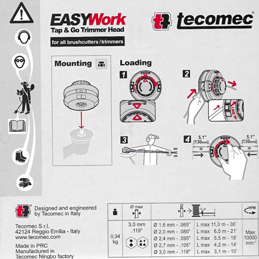 GŁOWICA EASY LOAD ŻYŁKOWA DO KOSY: Oryginalny głowica żyłkowa TECOMEC o wzmocnionej konstrukcji.