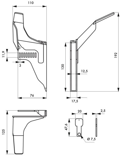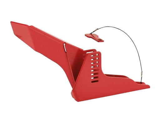 Stalowy, malowany korpus. Wytrzymałość termiczna. Zamknięcie na kłódke. Do zaworów 1/4 obrotu, dźwignia płaska, szerokość min. 20 mm, regulowany.