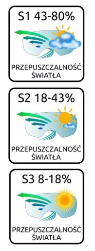 Filtr kategorii S3 – transmisja światła słonecznego na poziomie od 8 do 18%. Gogle z tym filtrem przeznaczone są do jazdy podczas mocnego, intensywnego słońca, bez chmur. Nadają się do używania na dużych wysokościach.