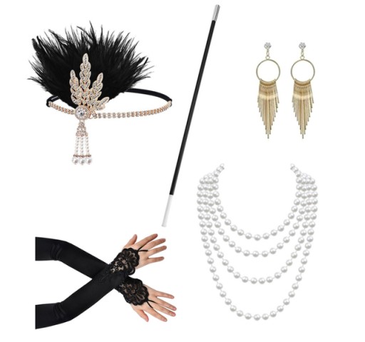 Zestaw doskonale sprawdzi się jako uzupełnienie stroju z lat 20, 30, charleston, flapper.