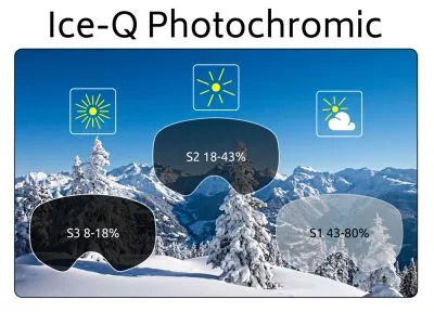 Ice-Q Photochromic – soczewka fotochromowa S0-S3, pozwala na używanie gogli w zmiennych warunkach pogodowych, od intensywnego słońca do pełnego zachmurzenia