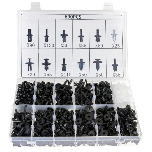 ZESTAW SPINEK, KOŁKÓW MONTAŻOWYCH, ROZPOROWYCH, 690 SZTUK, UNIWERSALNYCH W PRAKTYCZNYM PUDEŁKU