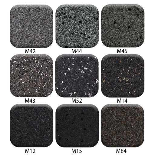 • jako wypełniacze stosuje się wyselekcjonowane, barwione kruszywo kwarcowe o różnych kolorach;