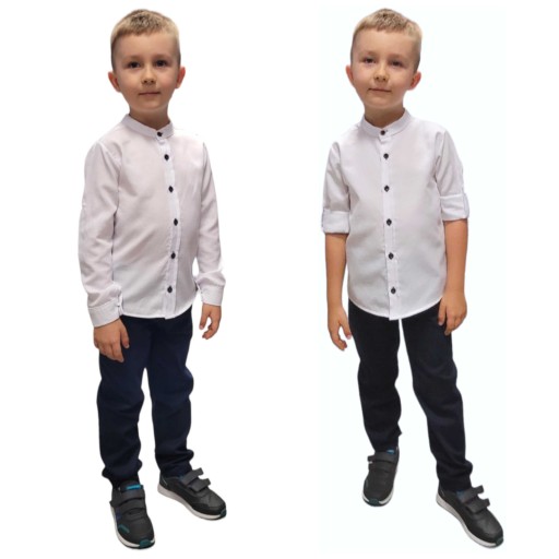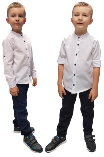 ELEGANCKA BIAŁA KOSZULA ZE STÓJKĄ CHŁOPIĘCA