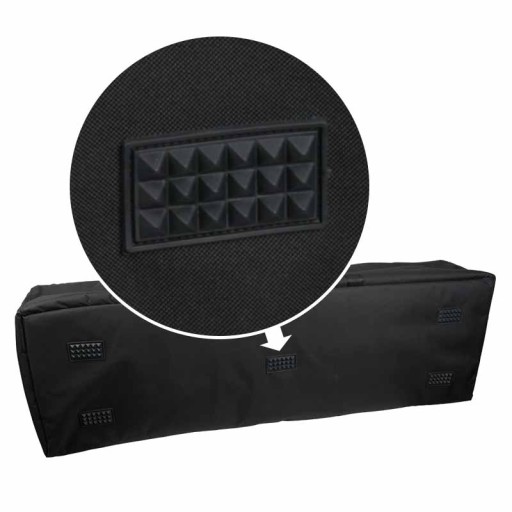 Profesjonalny, solidny pokrowiec marki Case4Me, zaprojektowany z myślą o transporcie i przechowywaniu ośmiu listew typu LED bar/pixel bar/ultra bar. Torba transportowa wykonana została z czarnej, nieprzemakalnej kodury w całości usztywnionej poliuretanową gąbką o grubości 0,5 cm. Posiada dwa uchwyty wykonane z mocnej, poliestrowej taśmy nośnej oraz pięć punktów podparcia w postaci szerokich, gumowych naszywek. Górna część jest z trzech stron odpinana pojedynczym ekspresem. W części zewnętrznej posiada ona obszerną kieszeń na różnego rodzaju akcesoria. W środku znajduje się 8 przegród na belki LED. Cztery dolne oddzielają od siebie listwy przyszytymi do spodu torby grodziami. Następne cztery przyszyte są do poziomej, wyjmowanej przegrody, która również usztywniona jest poliuretanową gąbką. Dzięki temu listwy nie stykają się ze sobą i podczas transportu są dobrze zabezpieczone przed deszczem, kurzem oraz uszkodzeniami mechanicznymi. To solidny pokrowiec na LED bary doceniany przez osoby związane z branżą oświetlenia scenicznego, zespoły eventowe oraz firmy realizujące dekorację sali weselnych.