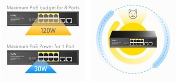 Uniwersalny 10-portowy Switch PoE 8x PoE 2x Uplink - FS1010P CUDY