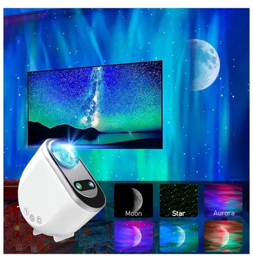 ten północny projektor galaktyki światła jest wyświetlany przez mieszankę 4 kolorów (niebieski, zielony, czerwony, biały) gwiazdy księżyc. Można je włączyć lub wyłączyć osobno w zależności od nastroju.