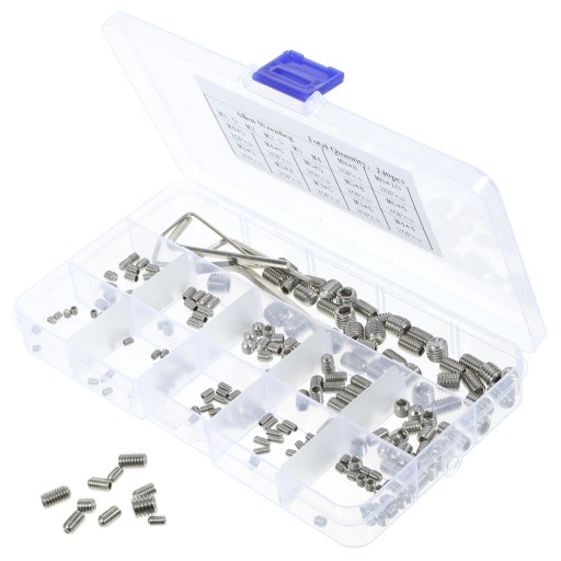 Ten zestaw śrub ustalających z gniazdem sześciokątnym i śruby ustalającej ze stali nierdzewnej spełnia wszystkie Twoje potrzeby w różnych zastosowaniach.