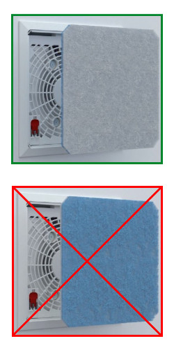 FILTR JEST WYKONANY Z BIAŁO-NIEBIESKIEJ WŁÓKNINY FILTRACYJNEJ, ZWRÓĆ UWAGĘ NA SPOSÓB MONTAŻU FILTRA.