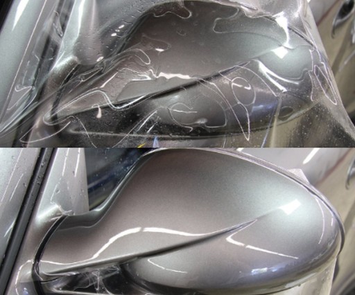 - W razie konieczności użyj opalarki ,aby folia dopasowała się do elementu auta. Folia pod wpływem wysokiej temperatury staje się plastyczna i łatwiej ją dopasować do takiego obłego elementu.
